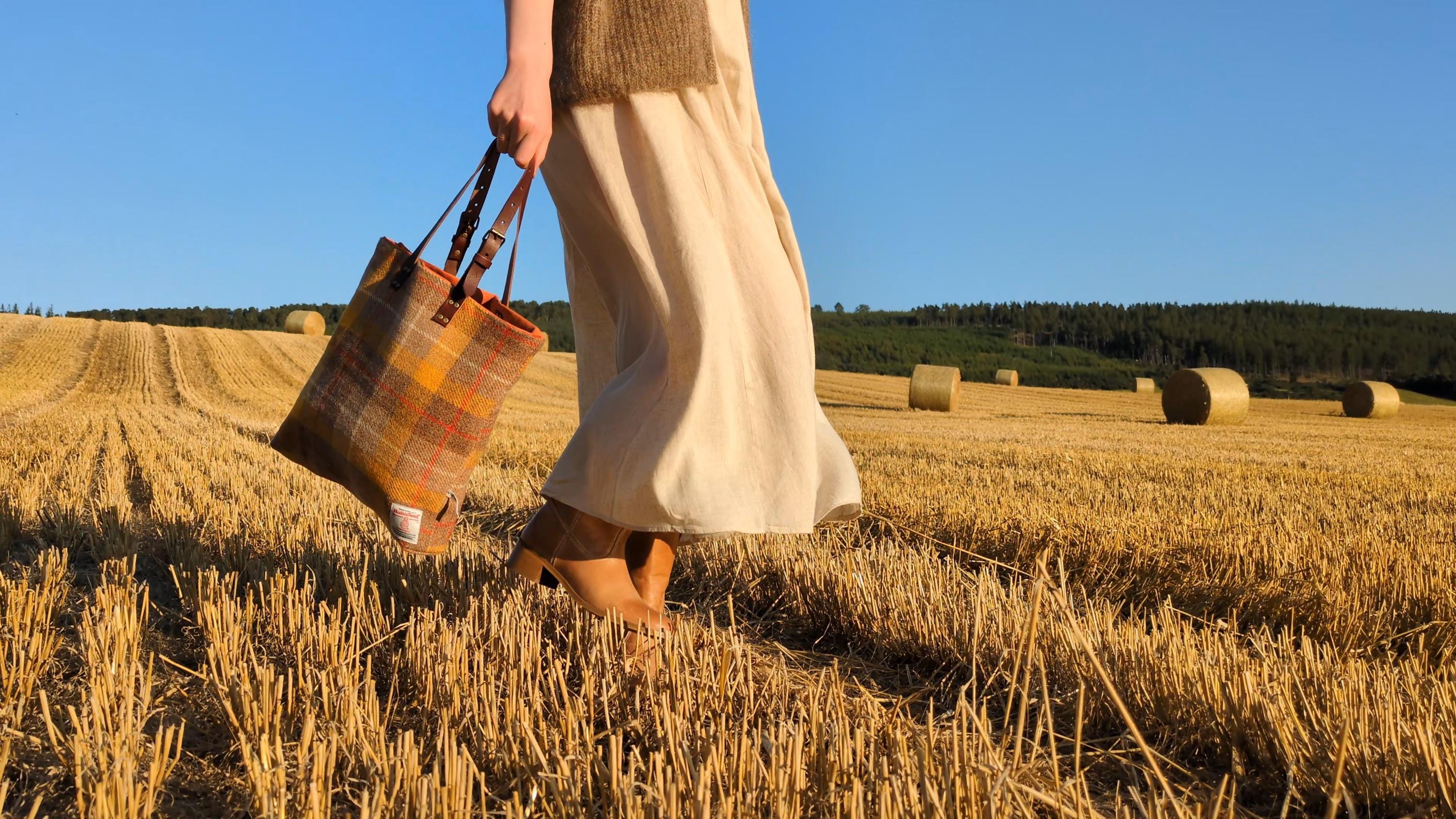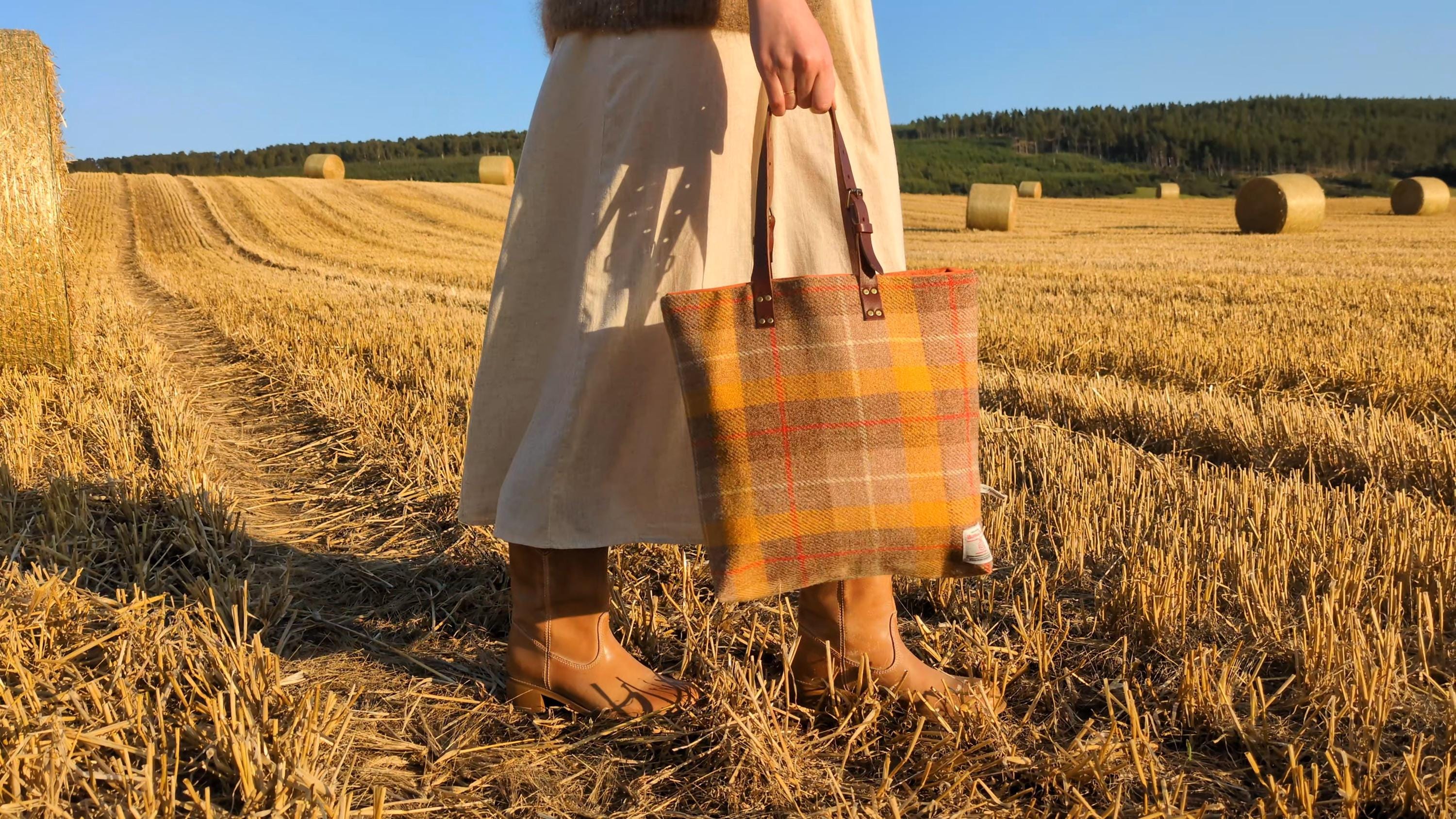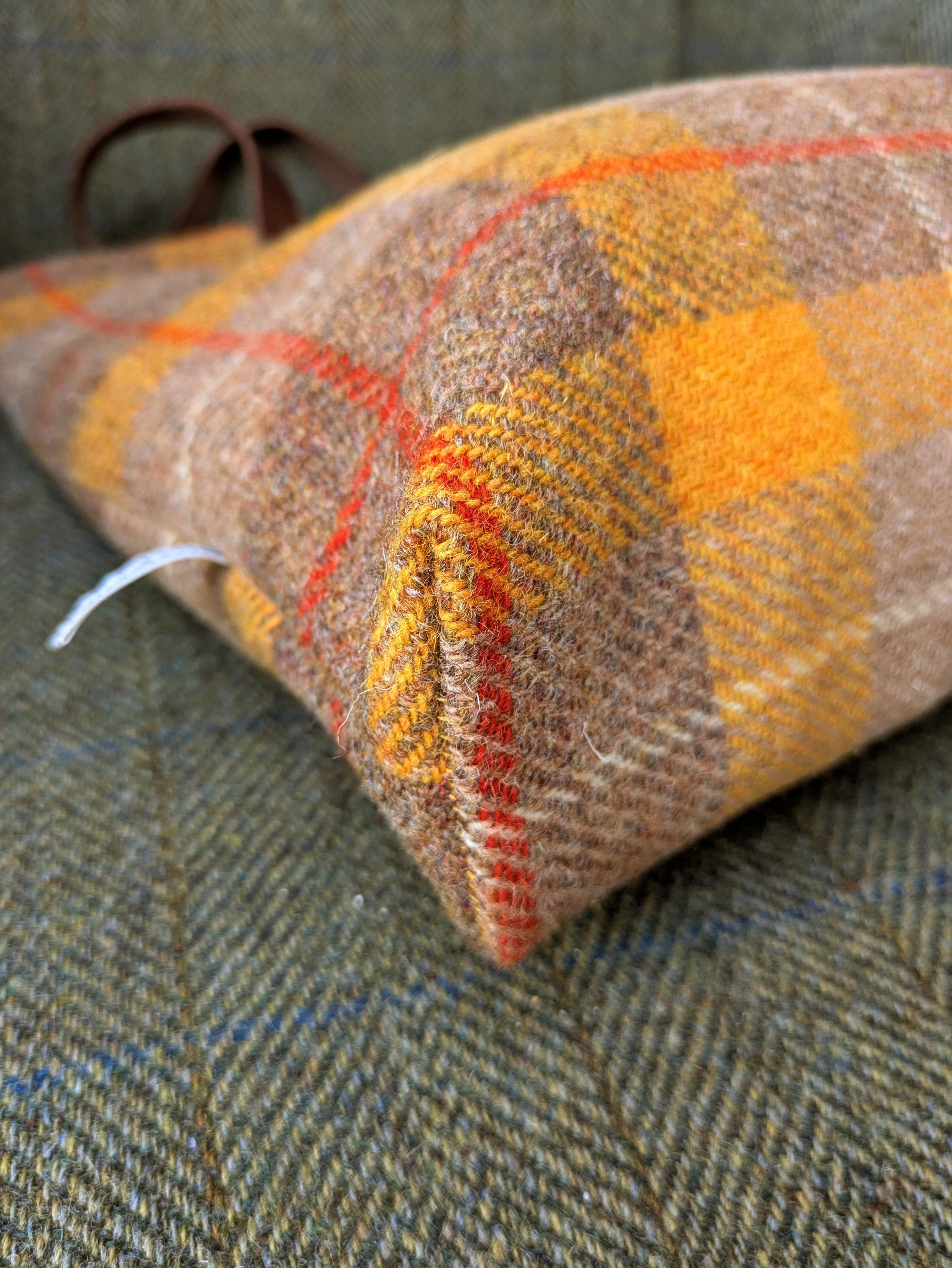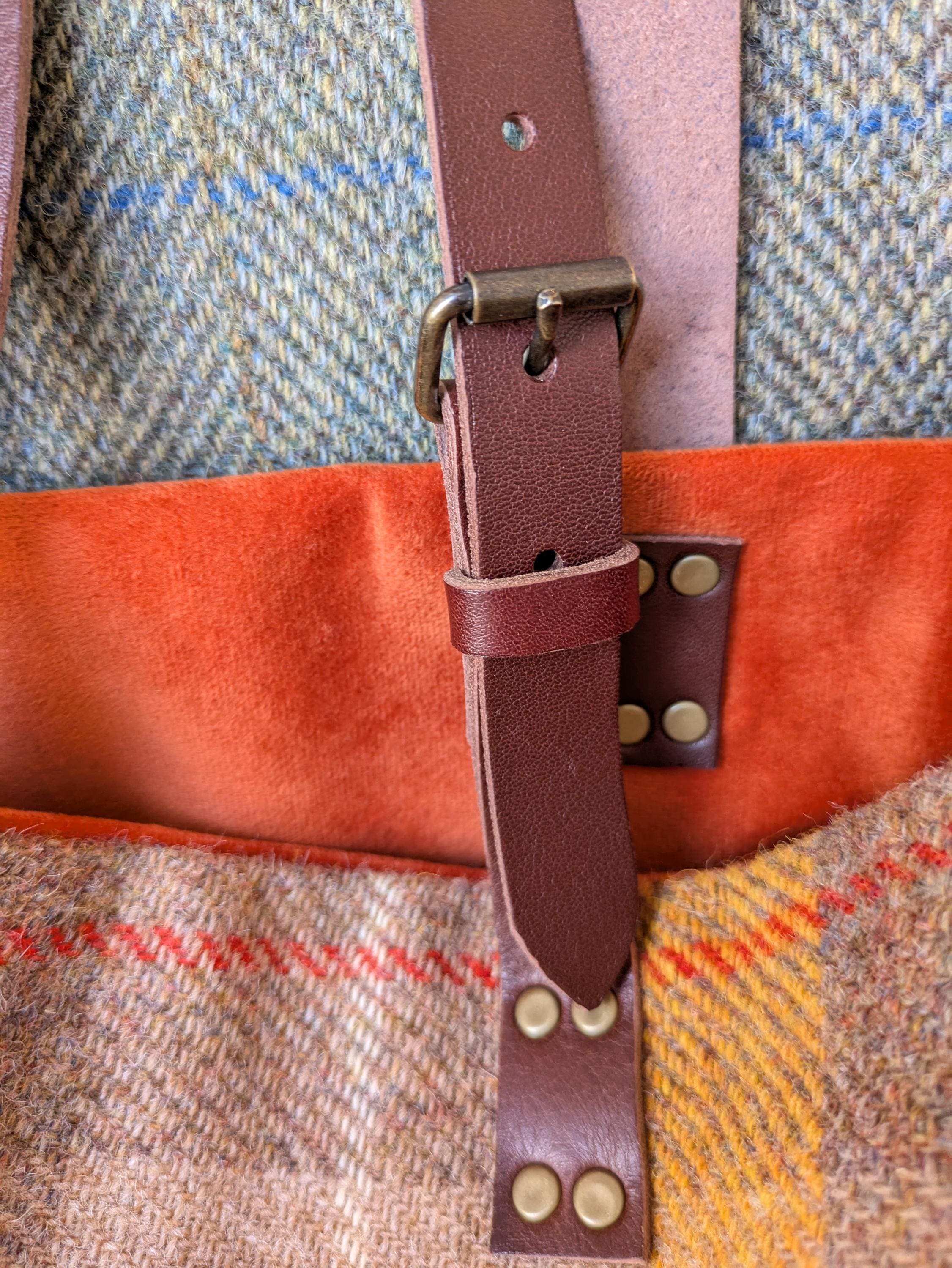 Beautifully handcrafted bag in orange check Harris Tweed.
