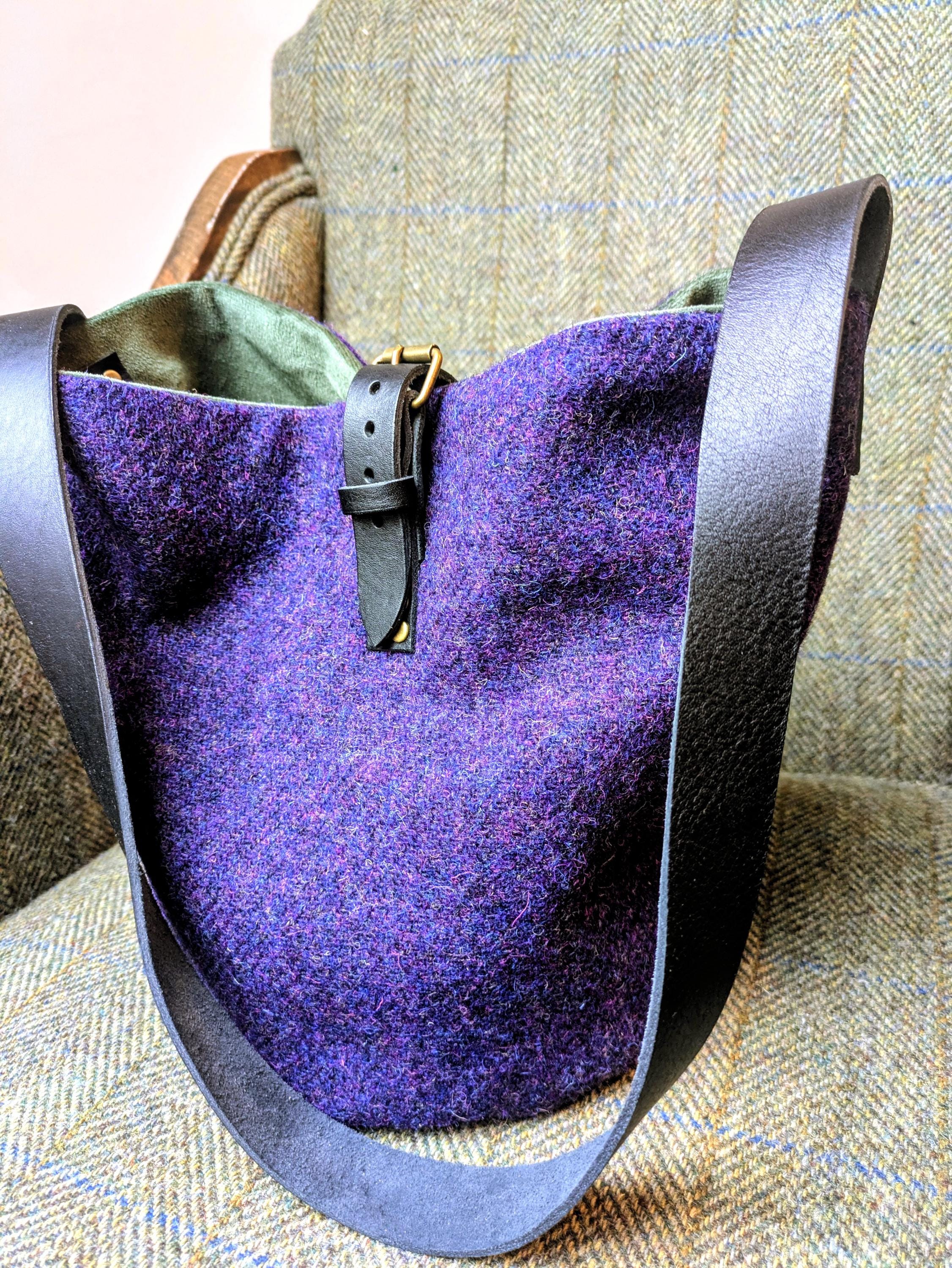 Beautifully handcrafted bag in deep purple 💜 Harris Tweed.