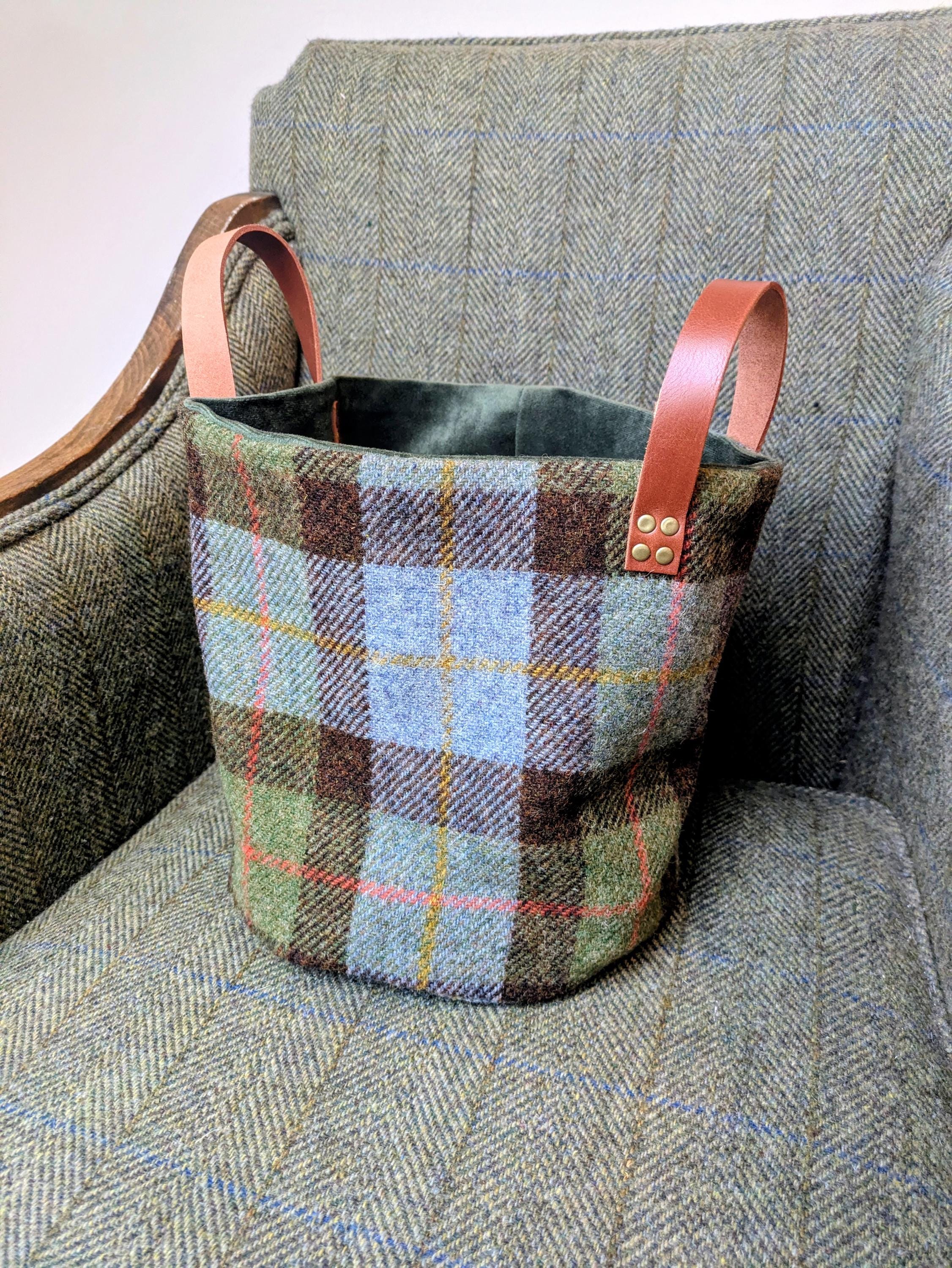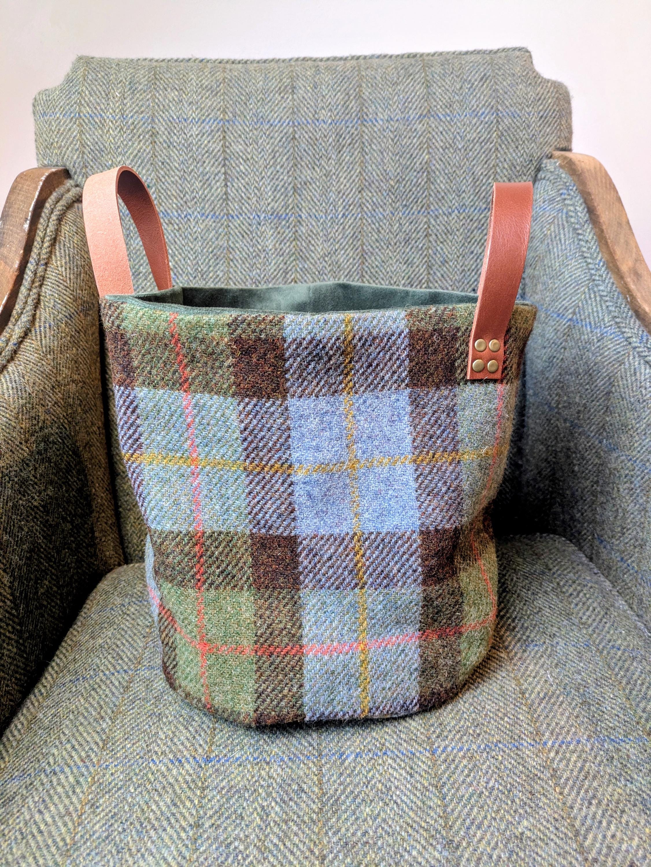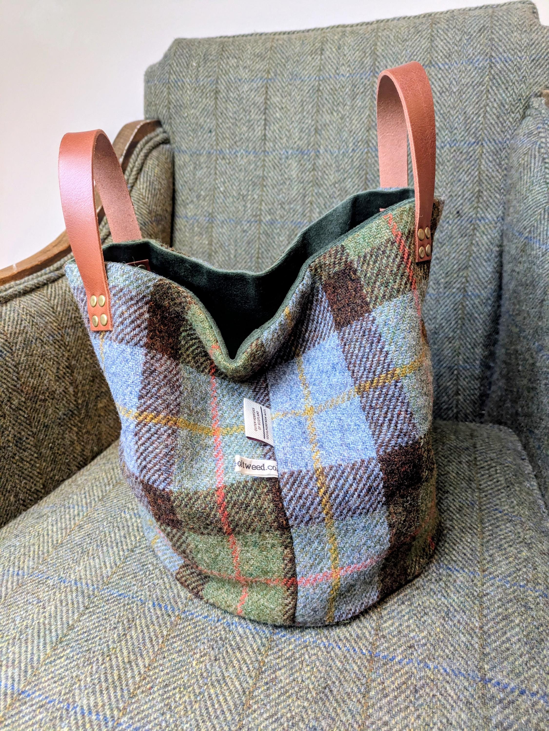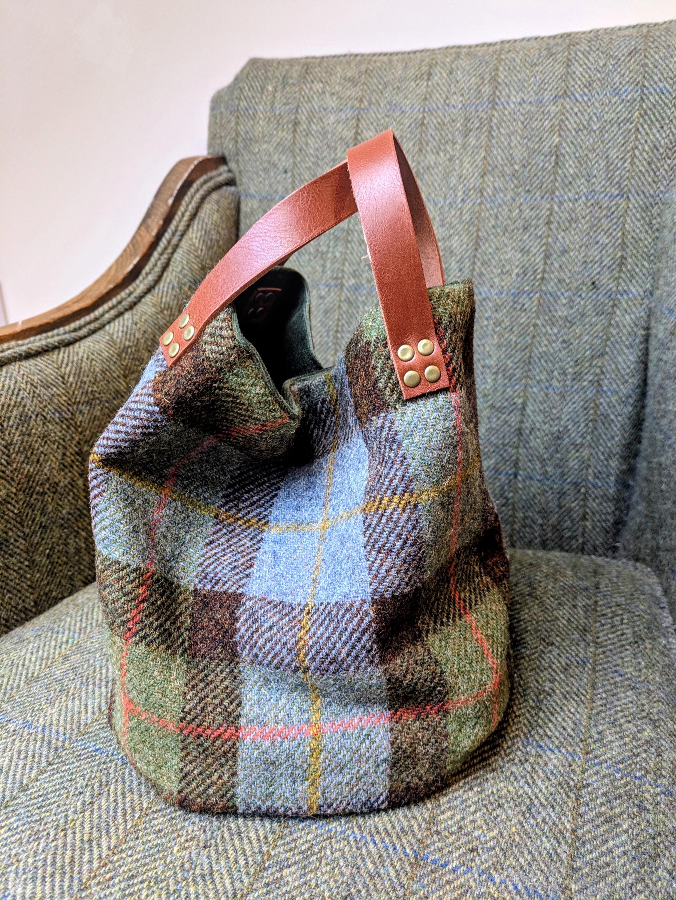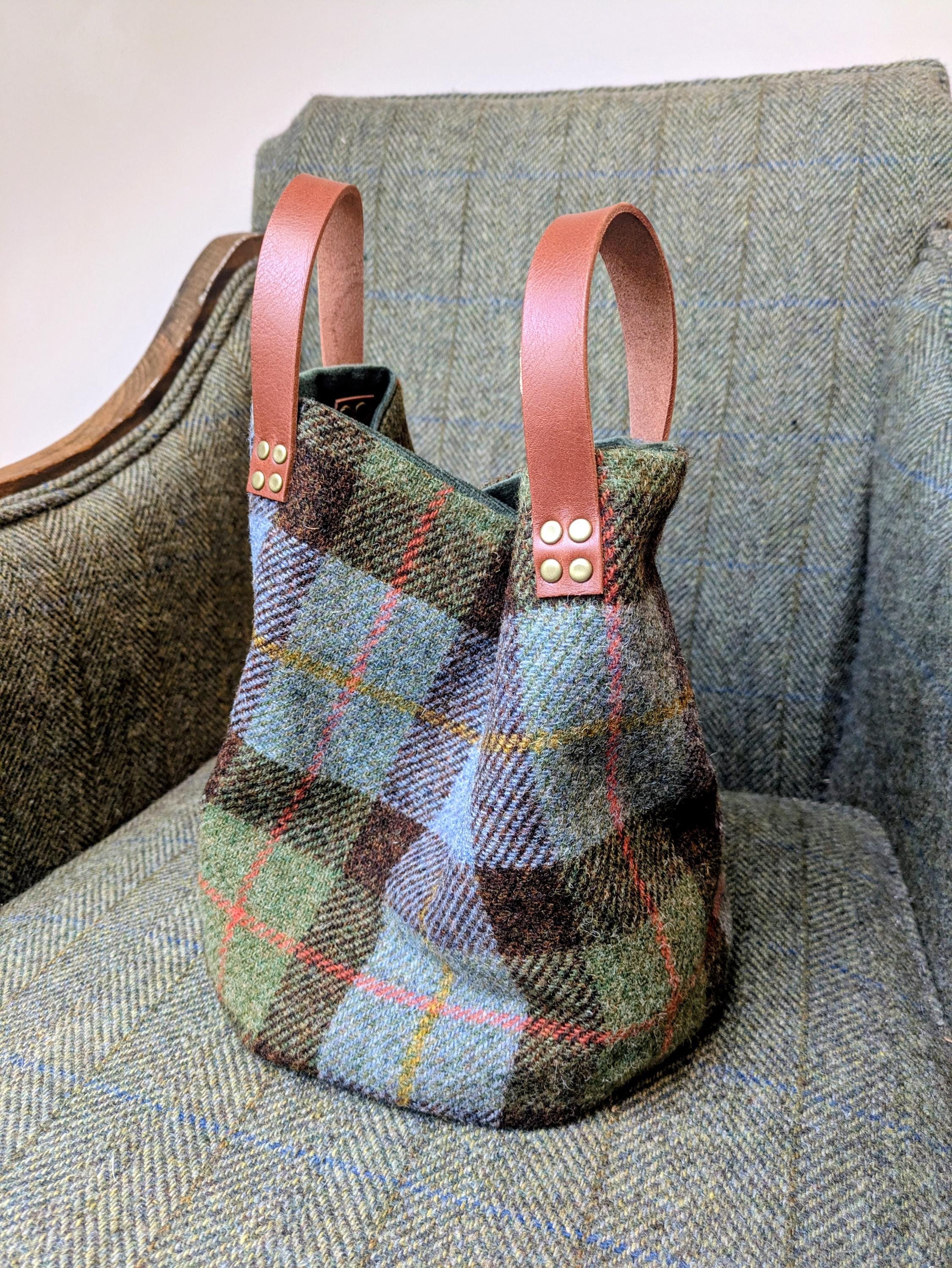 Beautifully handcrafted bag in green and brown checkedHarris Tweed.
