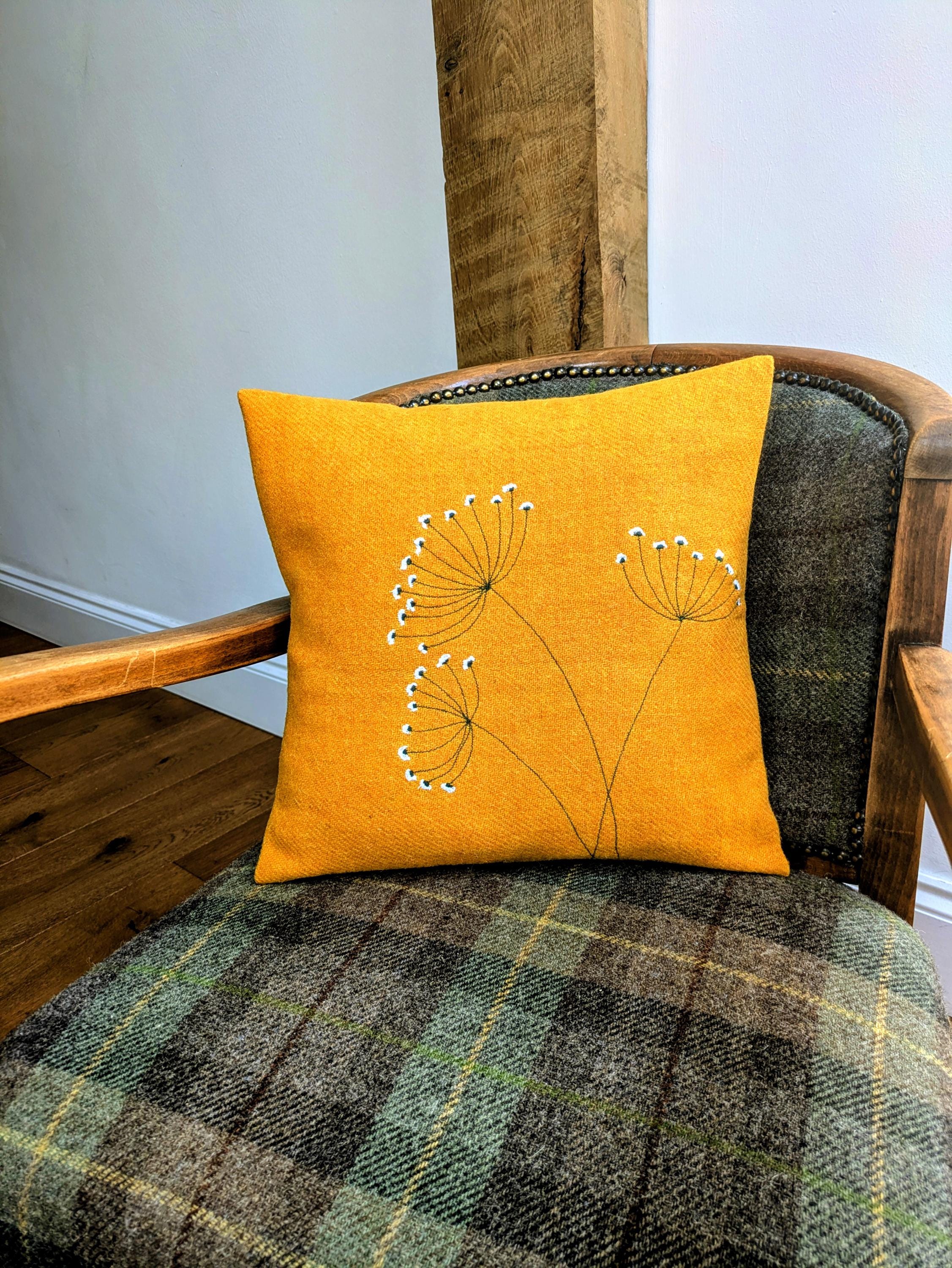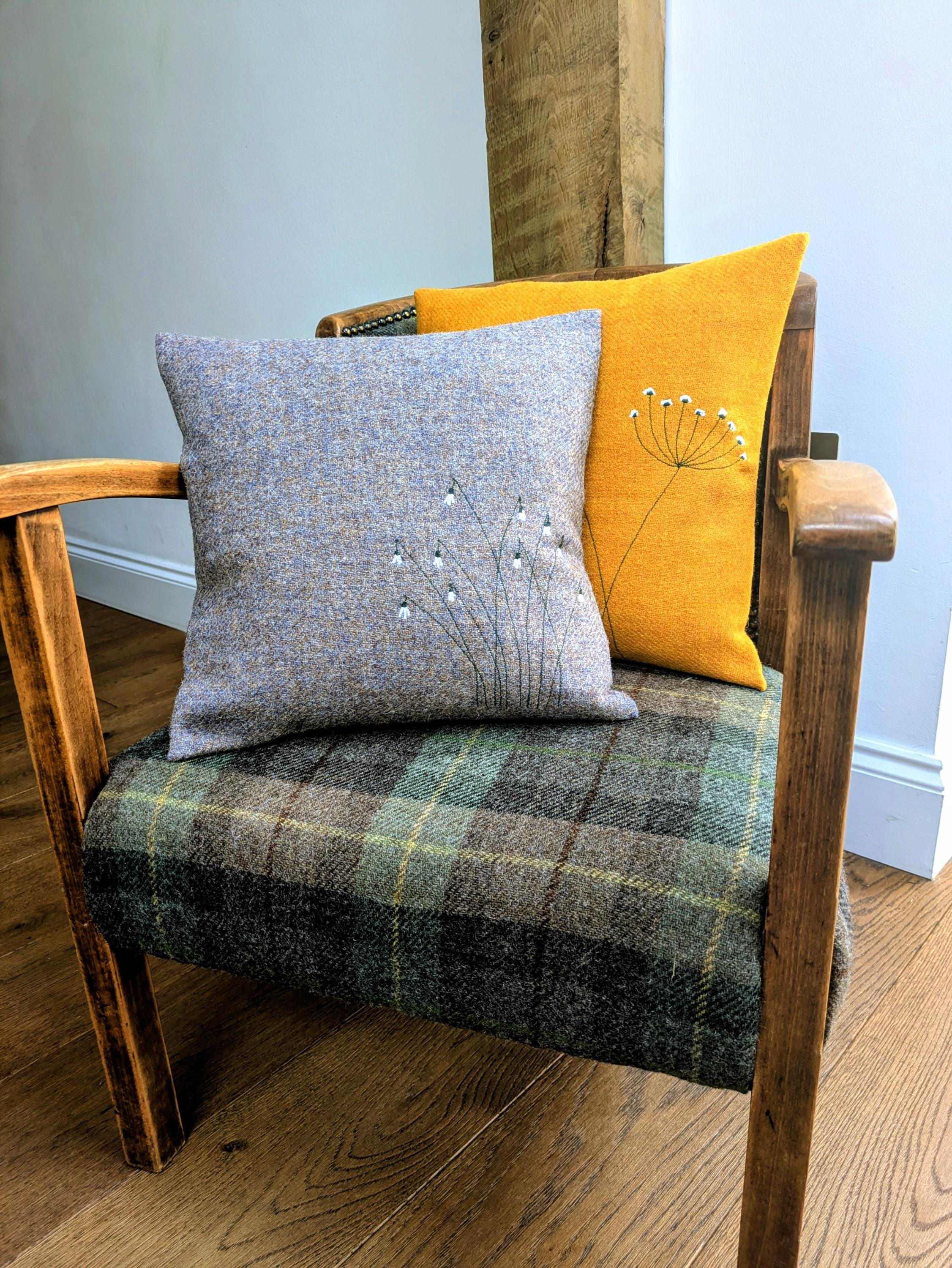 Hand Crafted embroidered cushion cover made with Harris Tweed.