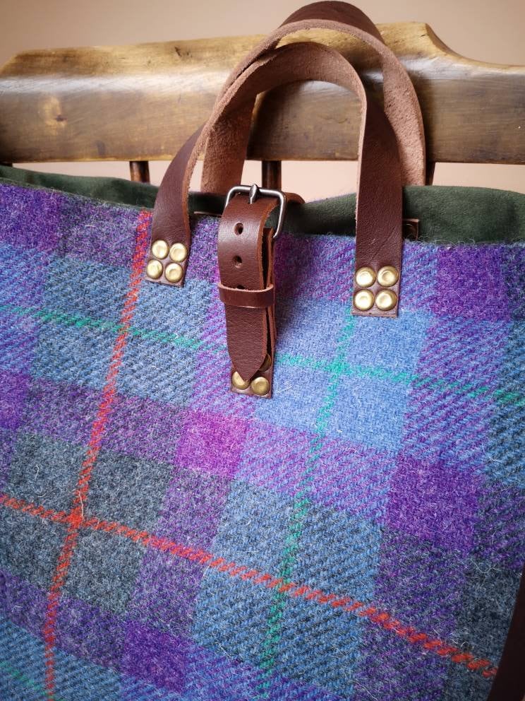 Beautiful multicoloured checked Harris Tweed on both sides of the bag.