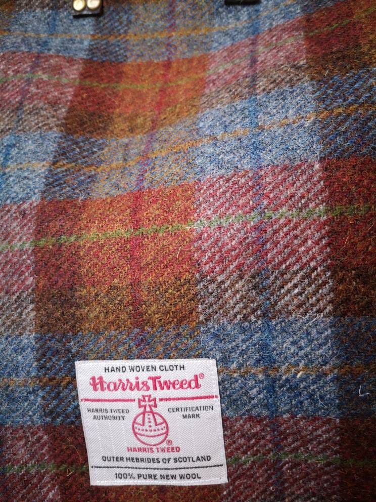 Checked red blue Harris Tweed on both sides.
